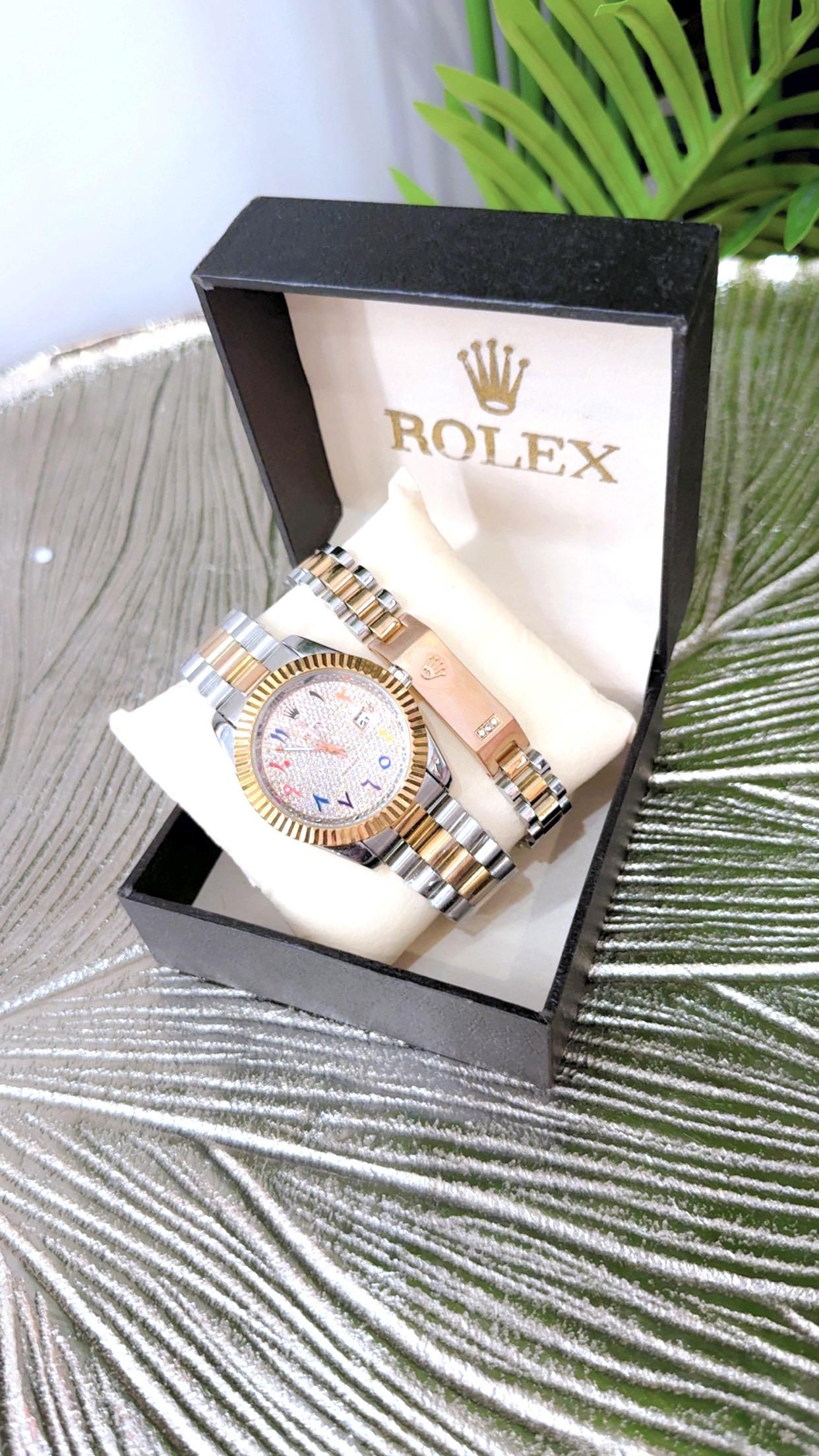 Elevate your style with this Men’s Rolex Watch in a stunning rose gold and silver finish. Crafted for men who appreciate luxury and precision, this timepiece combines elegance with durability. The dual-tone design makes it perfect for both formal occasions and everyday wear. Featuring a sleek dial, premium stainless steel strap, and reliable quartz movement — it’s more than a watch, it’s a statement of class.